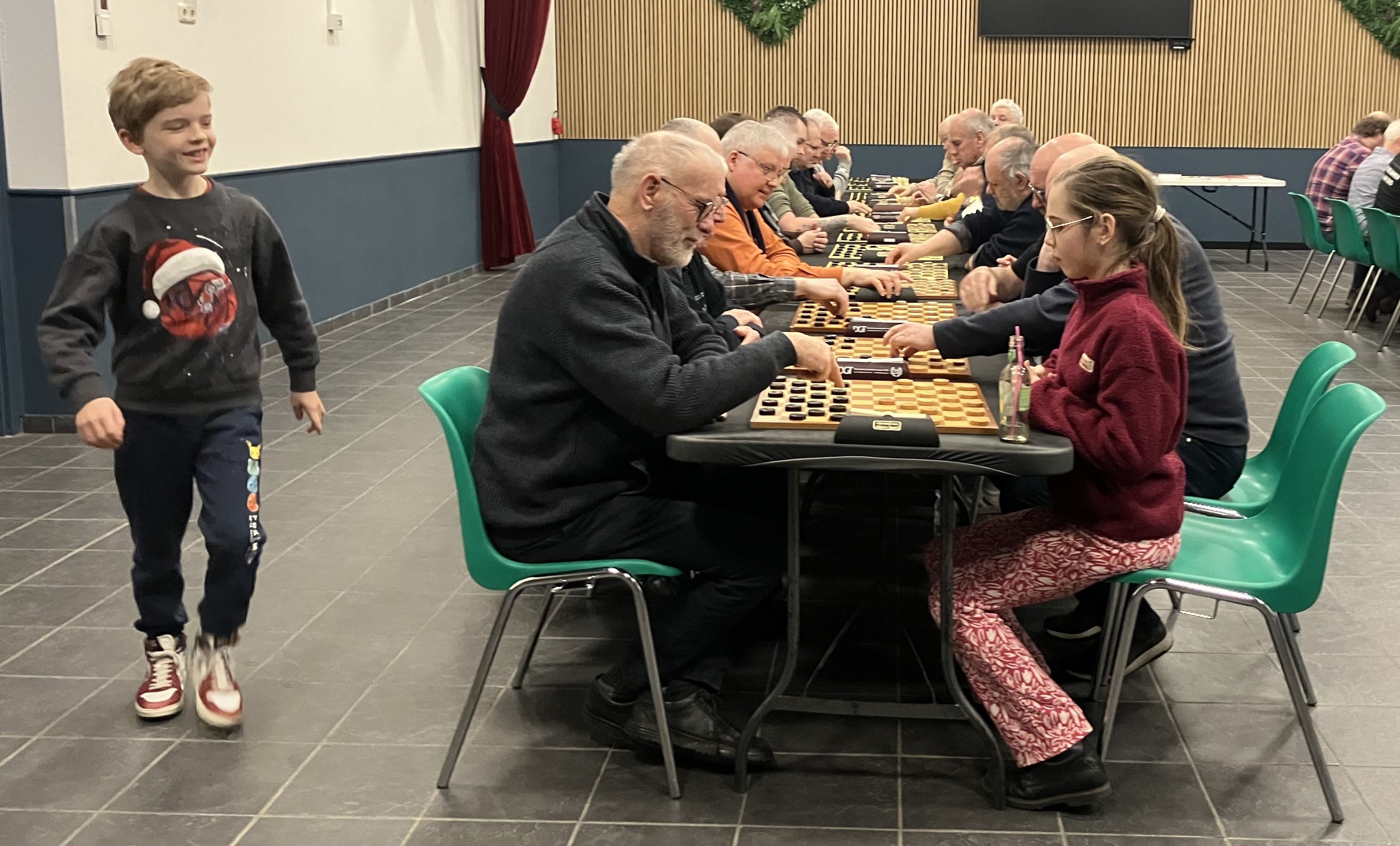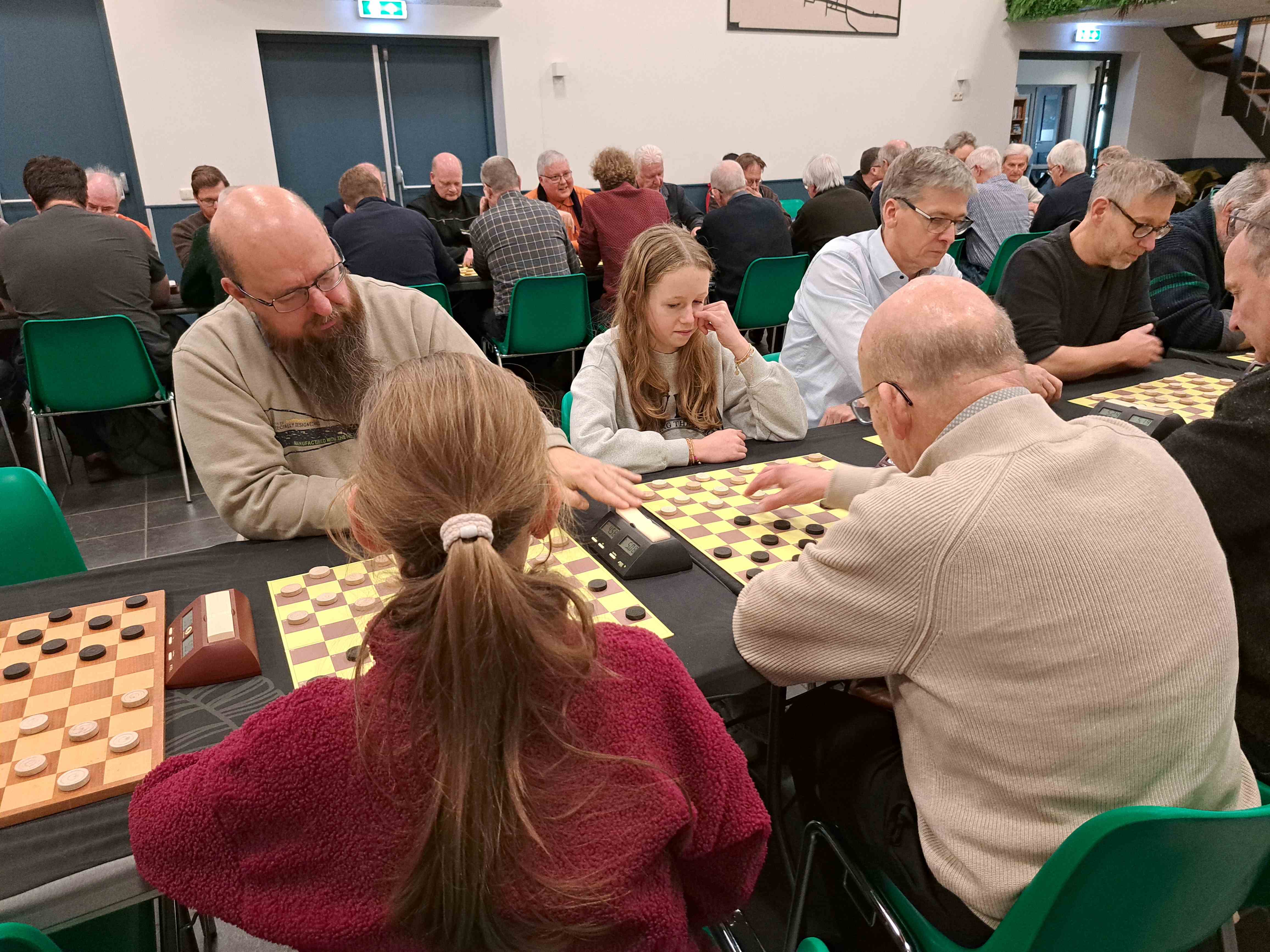 Van de andere 3 wedstrijden kunnen we vermelden dat het duel tussen vader en zoon Swelsen snel eindigde in een zege voor zoon Tom. Peter heeft bewezen een goede damleraar te zijn geweest voor zijn zoon Tom, leraar Economie.