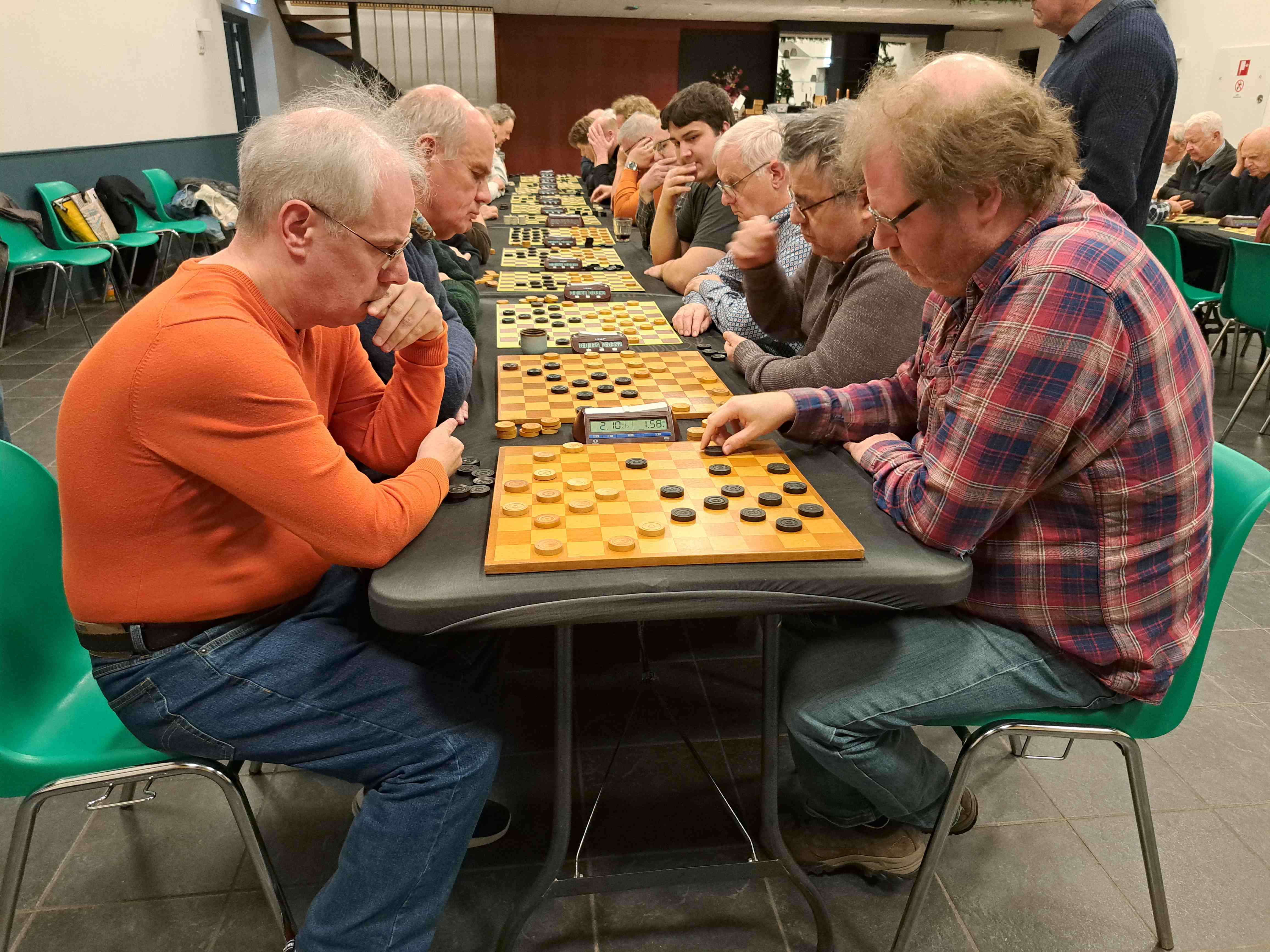 Het langstdurende gevecht van de middag was het gevecht tussen voormalig Limburgse kampioenen Peter Schellekens en Dieter van Gortel. Laatstgenoemde speelde een goede partij en wist de strijd steeds binnen de remisegrenzen te houden. In het zicht van de haven beging de moe gestreden Dieter na bijna 5 uur spelen in een moeilijk eindspel een fout en leed toch nog een nederlaag. Het was zuur voor hem maar de damsport is bikkelhard.