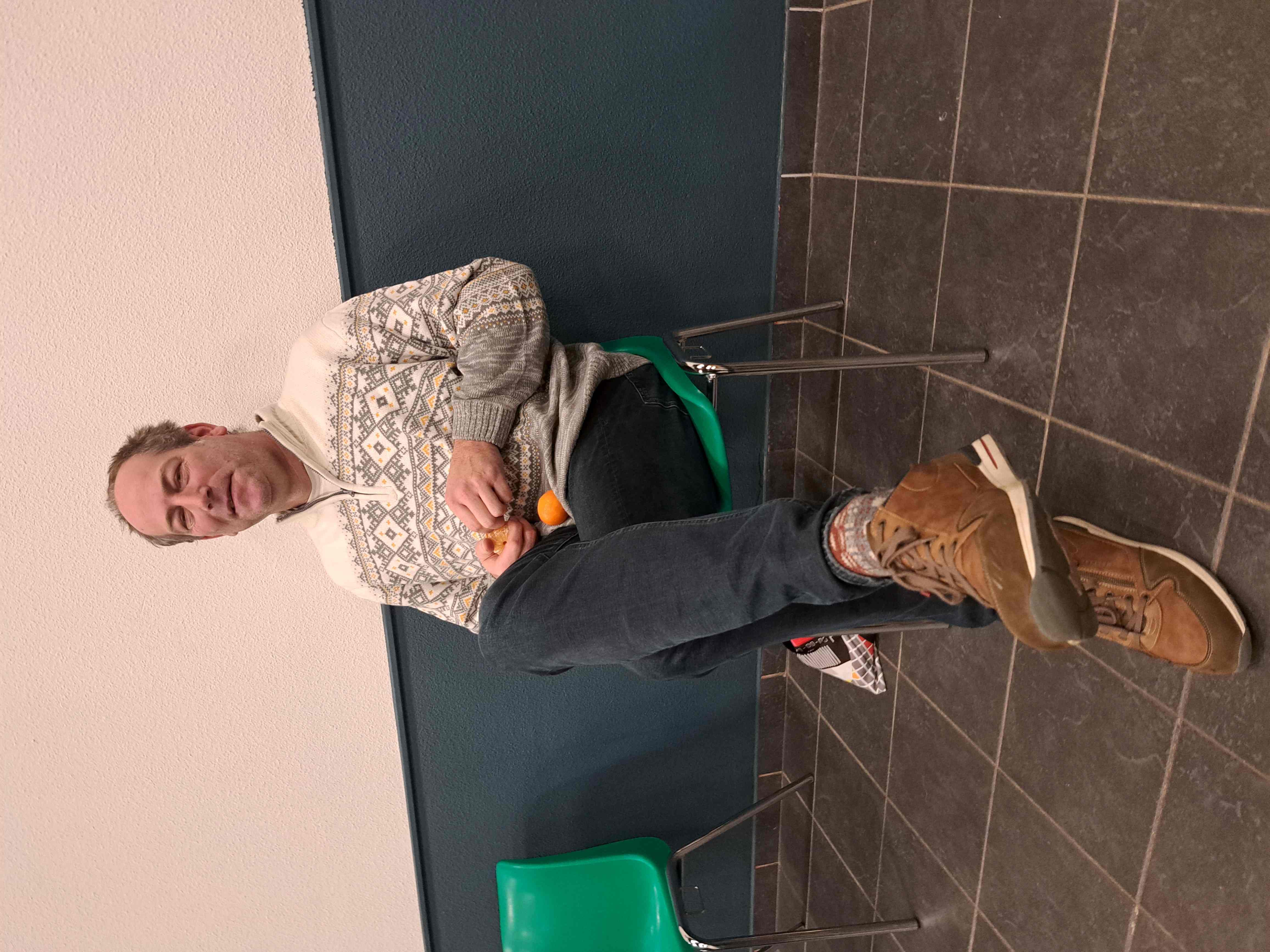 Na 27 zetten nam onze Nederlands B-kampioen een pauze en nuttigde een mandarijn. Vol vitaminen en energie begon hij daarna aan de 2e helft van zijn partij.