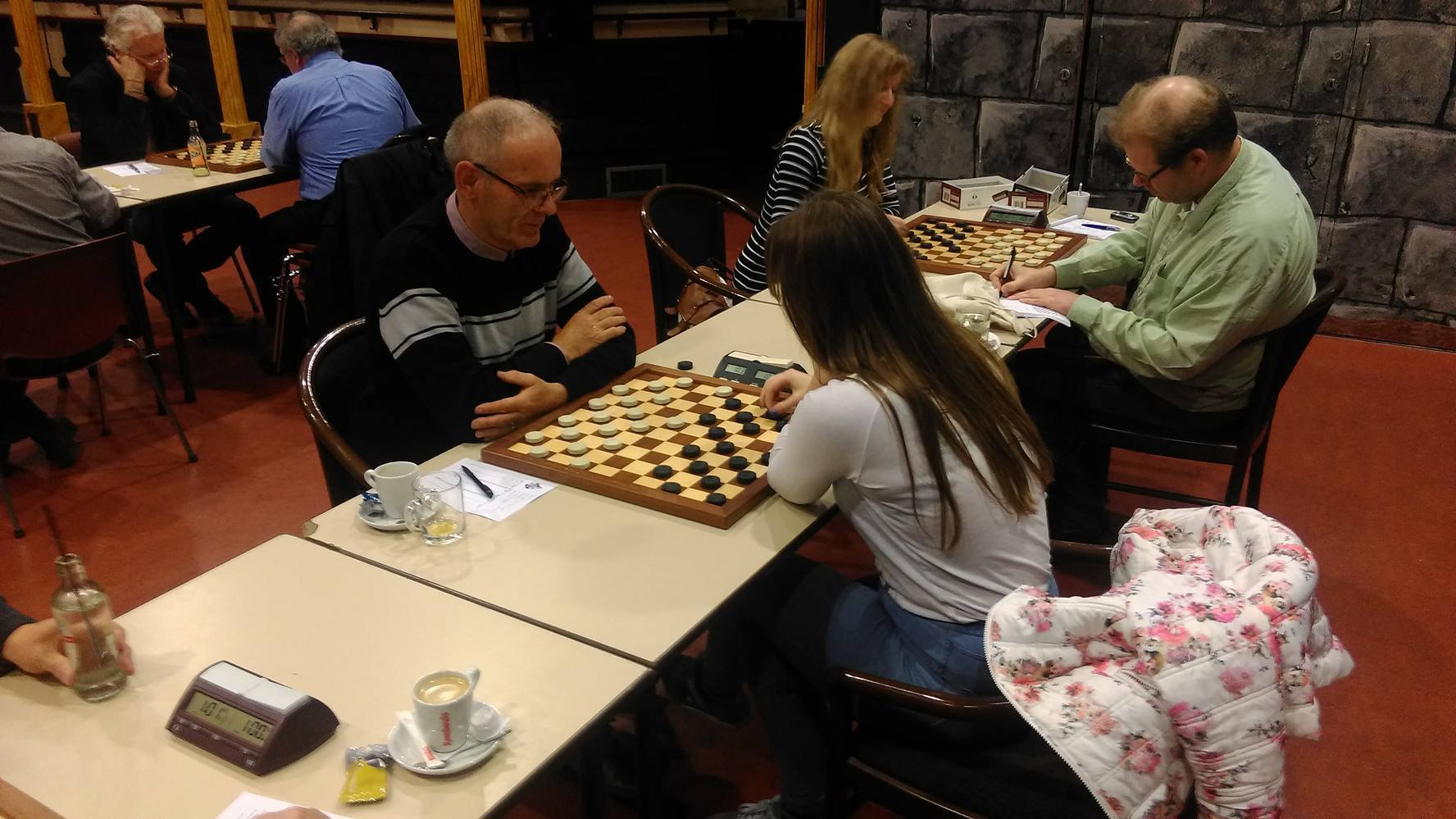De afgelopen week was de clubavond zeer bijzonder omdat de Limburgse damambassadeur/promotor/spelersmakelaar bij uitstek , Djordy Suylen met 2 jonge dames uit Wit Rusland aankwam. De ene draagt de GMIF titel en de andere (nog pas) de MIF titel. Het zijn de zussen Olga en Darya Fedorovich die met succes aan het Amersfoort toernooi deelnamen en nu vakantie vieren in Maastricht in afwachting op de volgende nationale ronde a.s. zaterdag, waarin beiden hun opwachting maken in de nationale hoofdklasse voor resp. Excelsior en CEMA de Vaste Zet.
