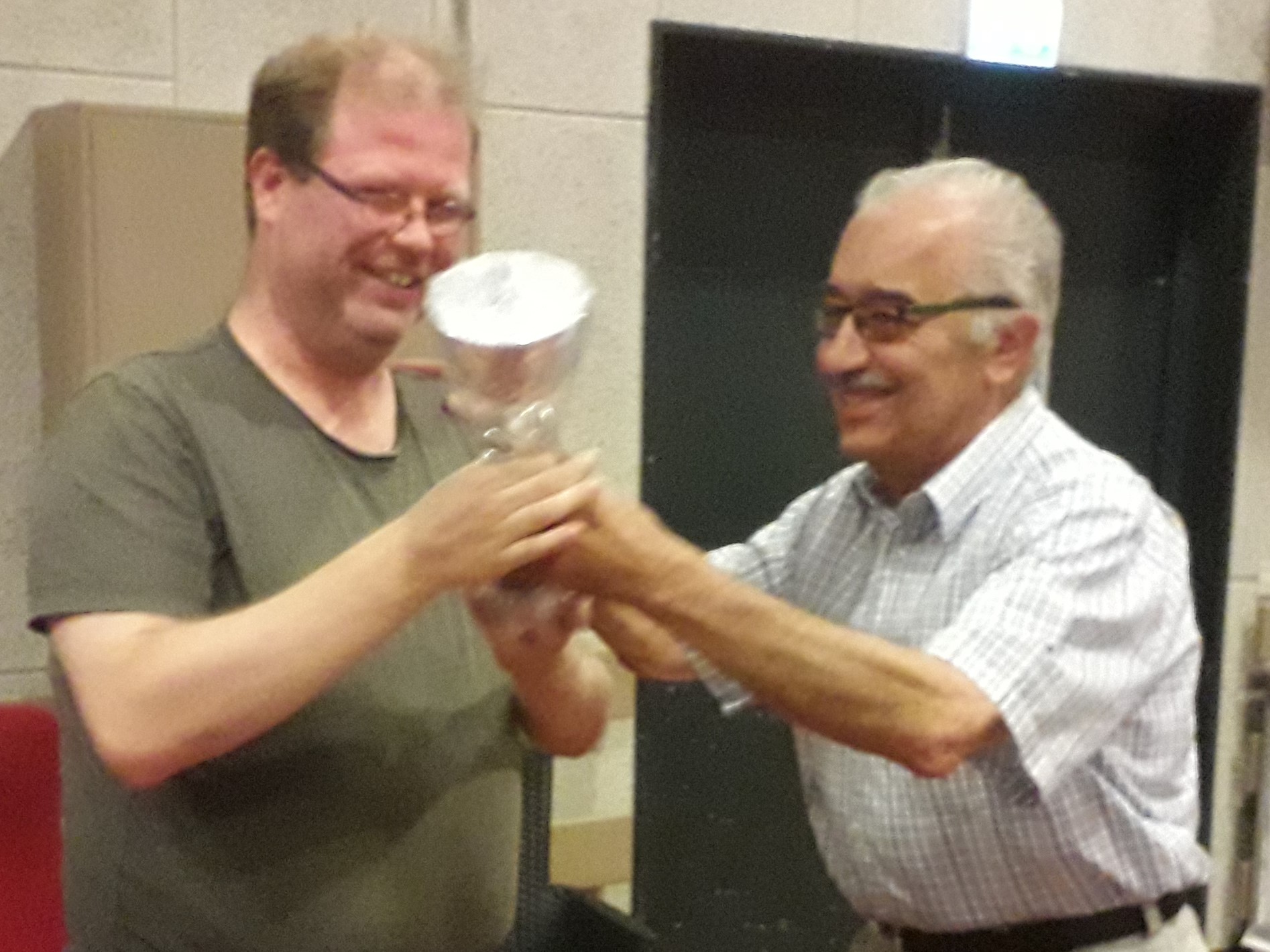 Met name de clubkampioen en bekerwinnaar, Gijs Schoenmakers werd in het zonnetje gezet vooral omdat hij de Pie Boosten bokaal mocht ontvangen van Pie Boosten zelf. Ondanks dat Pie niet meer damt volgt hij de club nauwlettend op de voet en was hij ook present op het verjaardagsfeest van Cees. Hij was ook zeer vereerd dat we de bokaal naar hem genoemd hebben, zo zeer zelfs dat hij persoonlijk voor een beker zorgde en het bijbehorende plaatje graveerde.